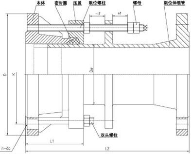 單法蘭限位伸縮接頭適用于管道一邊法蘭連接,一邊為焊接的不一致性的管道連接中。